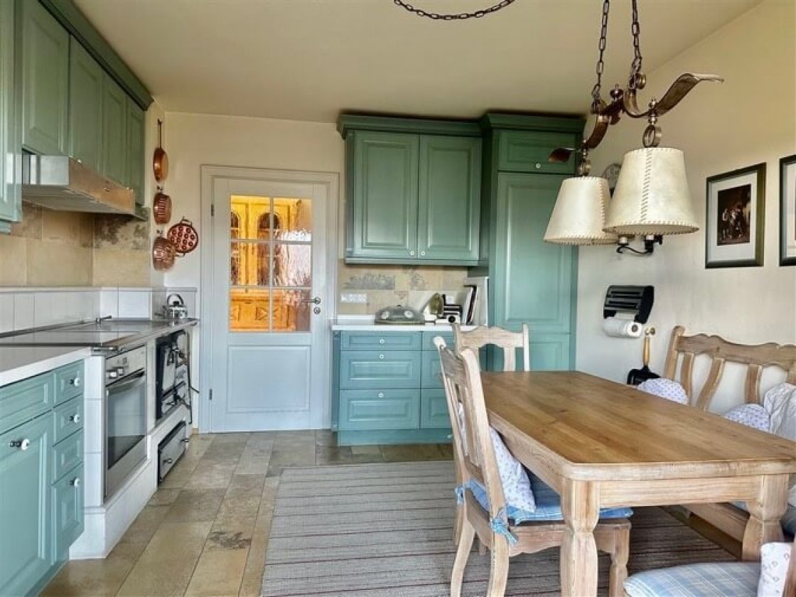 Das Erdgeschoss beherbergt eine großzügige, sehr hochwertig ausgestattete 3-Zimmerwohnung mit ca. 122 m² Wfl. Zu den Ausstattungshighlights gehört: eine ansprechende Landhausküche mit Miele-Markengeräten und einem speziellen Holzofen, Sollnhofner Fliesen und Eichenparkett, ein Kachelofen, ein großzügiges Tageslichtbad mit Dusche und Badewanne, der umlaufende Balkon und die geschützte Terrasse mit Gartenzugang.