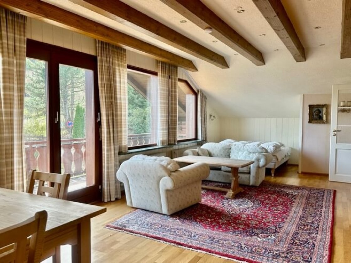 Das nord-west ausgerichtete Apartment verfügt über knapp 40 m² Wfl. und eine luftige Raumhöhe mit Sichtdachstuhl. Das zweite Apartment hat eine Größe von 54 m². Vom Süd-Balkon hat man hier einen herrlichen Blick aufs Hörnle und den Weitblick Richtung Osten. Die Abseiten in beiden Apartments sind als Stauraum nutzbar.
