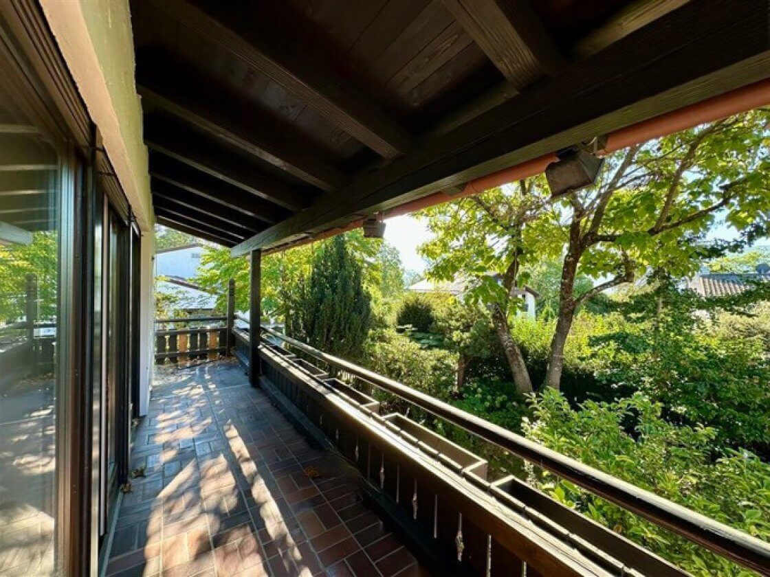 Das Obergeschoss beherbergt drei Schlafzimmer. Zwei erschließen den Süd-Balkon mit schöner Aussicht auf die umliegenden Berge. Diese beiden Schlafzimmer sind derzeit mit einem Rundbogen verbunden. Da beide Zimmer einen separaten Zugang haben, lassen sich auch wieder zwei separate Zimmer herstellen. Das dritte Schlafzimmer ist Richtung Osten ausgerichtet.