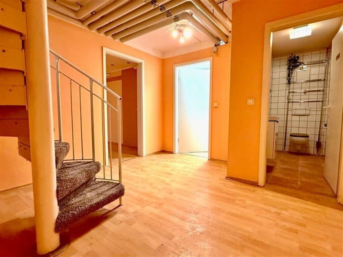 Innerhalb der Einheit gelangt man über eine Wendeltreppe ins Untergeschoss. Hier befindet sich ein separater rund 20 m² großer Kellerraum, der viel Platz für Lager oder Archiv bietet. Des Weiteren ist hier eine kleine Teeküche sowie ein separates WC untergebracht.