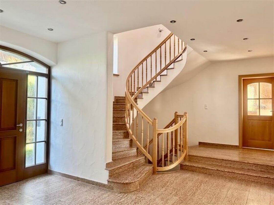 Das Erdgeschoss verfügt auf der Nordseite über einen großzügigen repräsentativen Eingangsbereich mit einem stilvoll geschwungenem, offenem Treppenhaus.