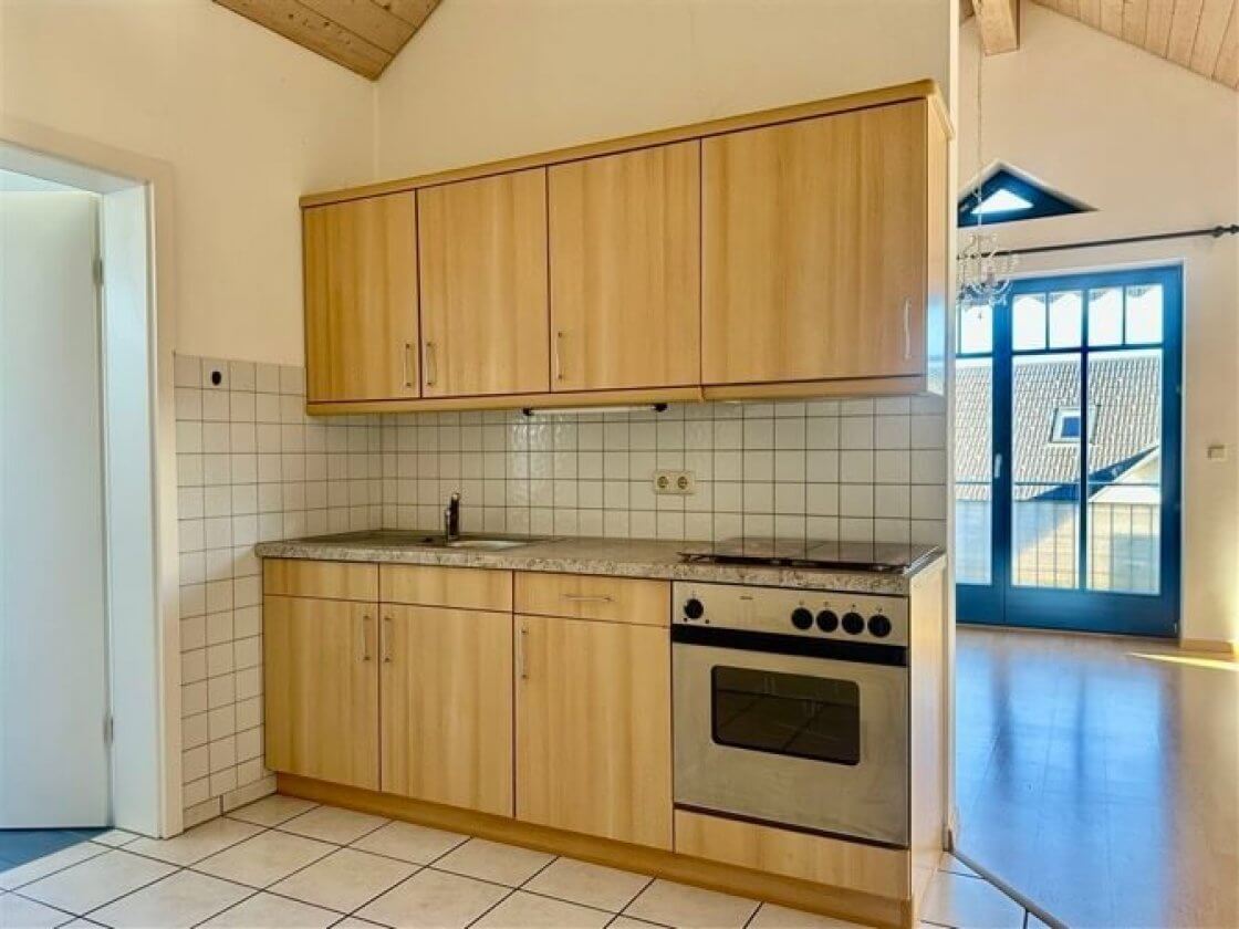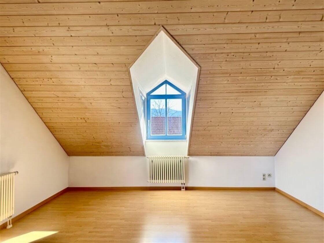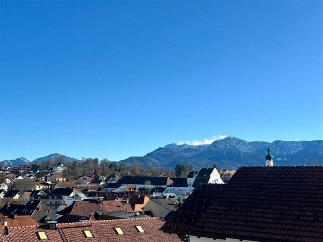 Diese helle 2 Zimmerwohnung befindet sich, sehr ruhig gelegen, im Dachgeschoss eines Mehrfamilienhauses mitten im Zentrum von Murnau. Durch die enorme Raumhöhe bis unter die Dachgiebel wirken die knapp 47m² Wohnfläche wesentlich großzügiger. Der Wohnraum mit halboffener Einbauküche ist mit Ahornlaminat ausgestattet und durch die Gaubenfenster hat man einen schönen Blick auf die umliegenden Berge. Auch vom Ost-Balkon erstreckt sich der Blick über die Dächer Murnaus bis in die Berge. Neben dem separaten Schlafzimmer, verfügt die Wohnung über ein Tageslichtbad mit Badewanne und einem kleinen praktischen Abstellraum. Im Untergeschoss steht ein (gemauerter) Kellerraum und ein eigener Waschmaschinenanschluss, sowie ein Garagenstellplatz in der hauseigenen Tiefgarage zur Verfügung.