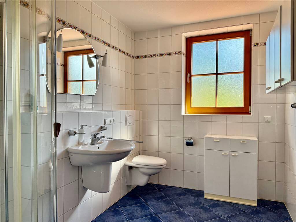 Das Obergeschoss umfasst zwei Zimmer auf der Westseite, die als Kinderzimmer, Gästezimmer oder Büro genutzt werden können. Ein separates Bad mit Dusche ist ebenfalls vorhanden.