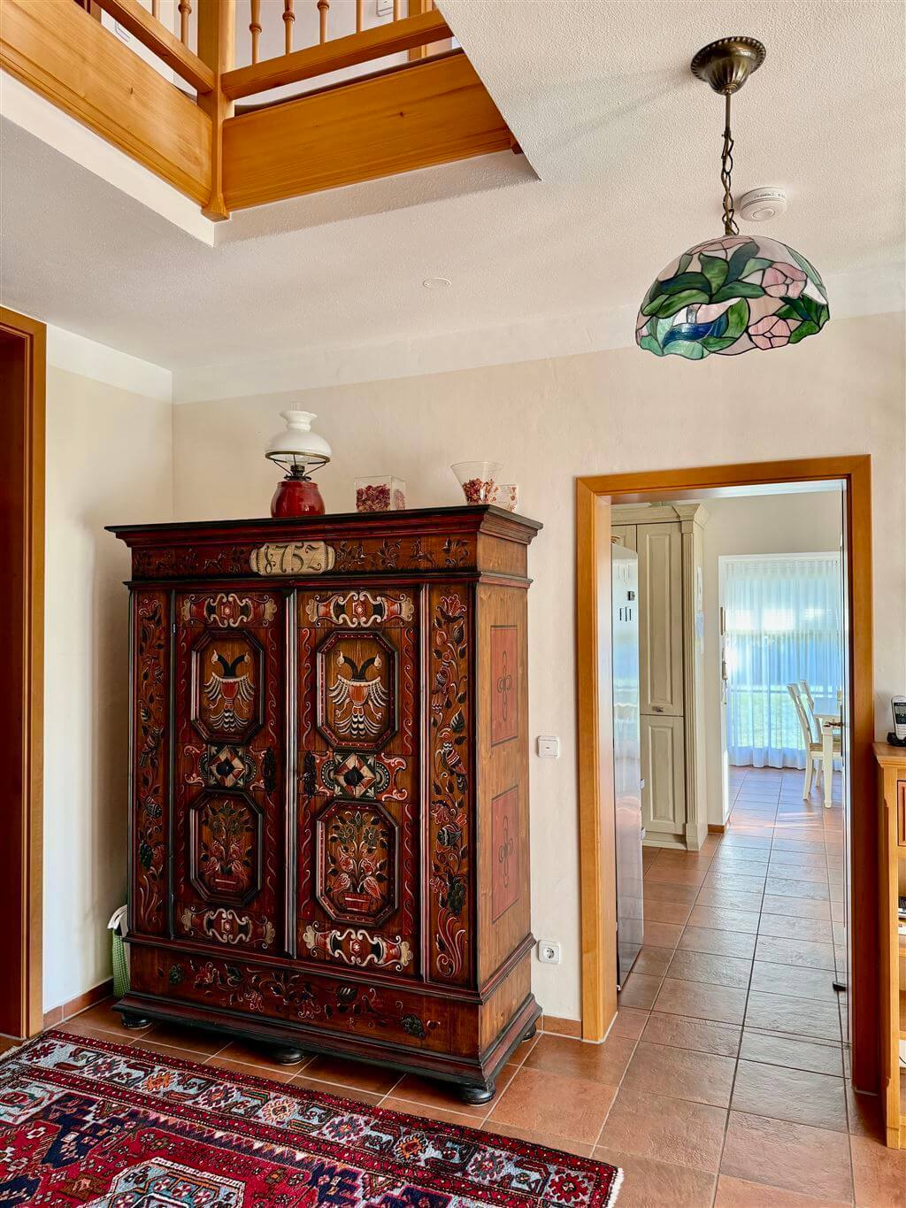 Im Erdgeschoss empfängt ein großzügiger Eingangsbereich mit Diele und Garderobe.