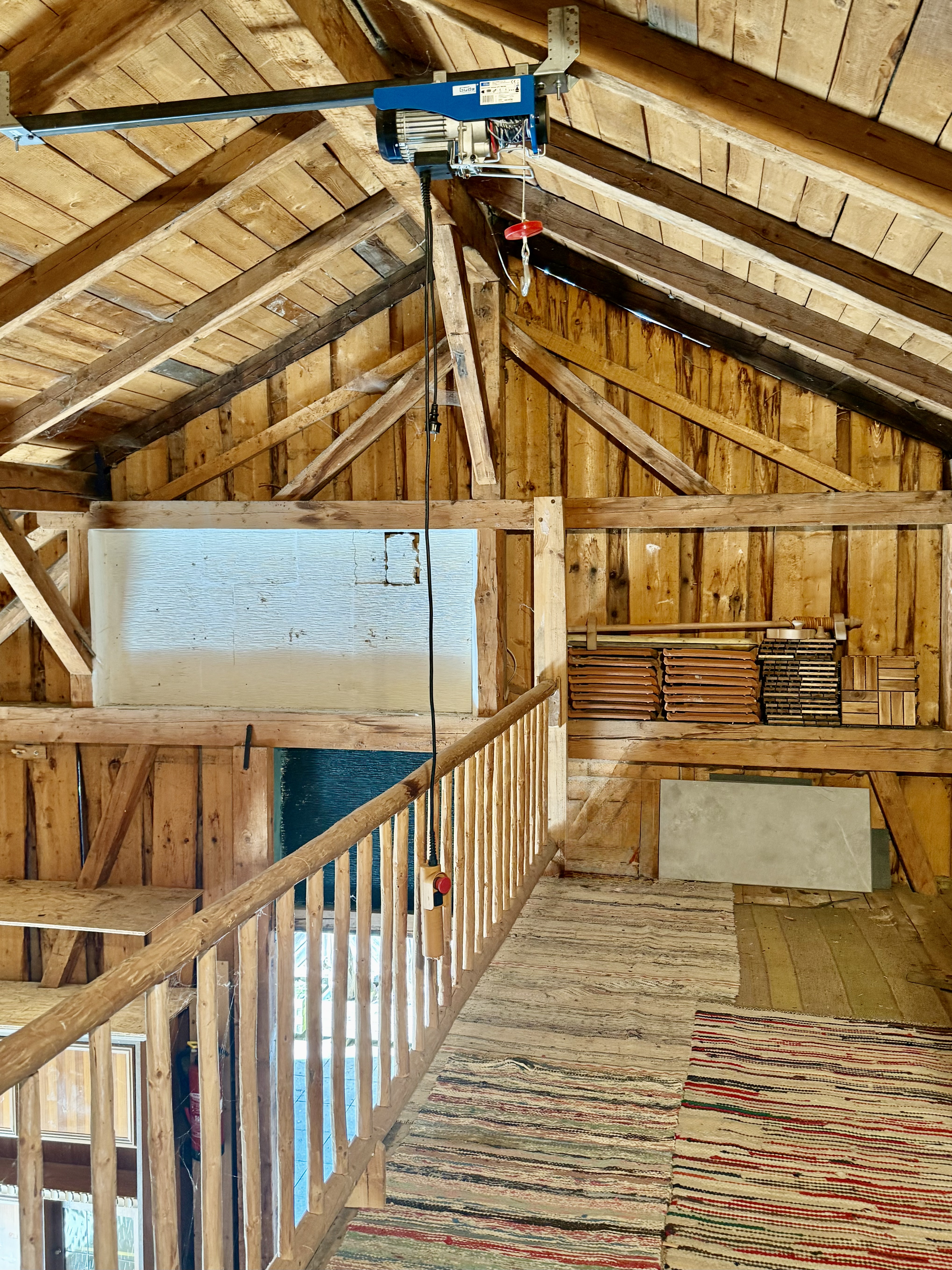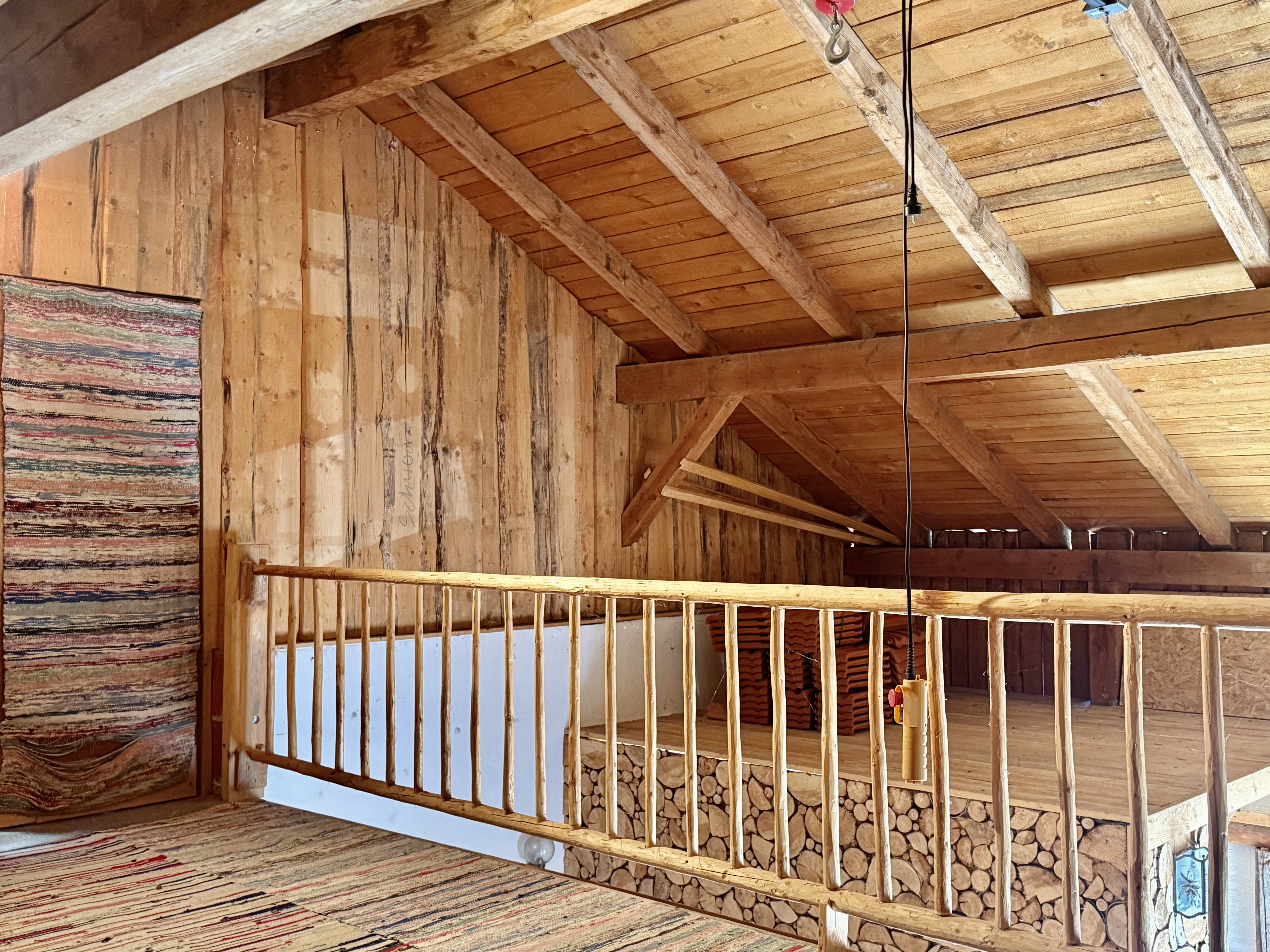 Des Weiteren befindet sich auf dieser Ebene ein Badezimmer mit Dusche und WC. Für zusätzlichen Stauraum stehen ein größerer Speicherraum, sowie der obere Teil der Tenne zur Verfügung.