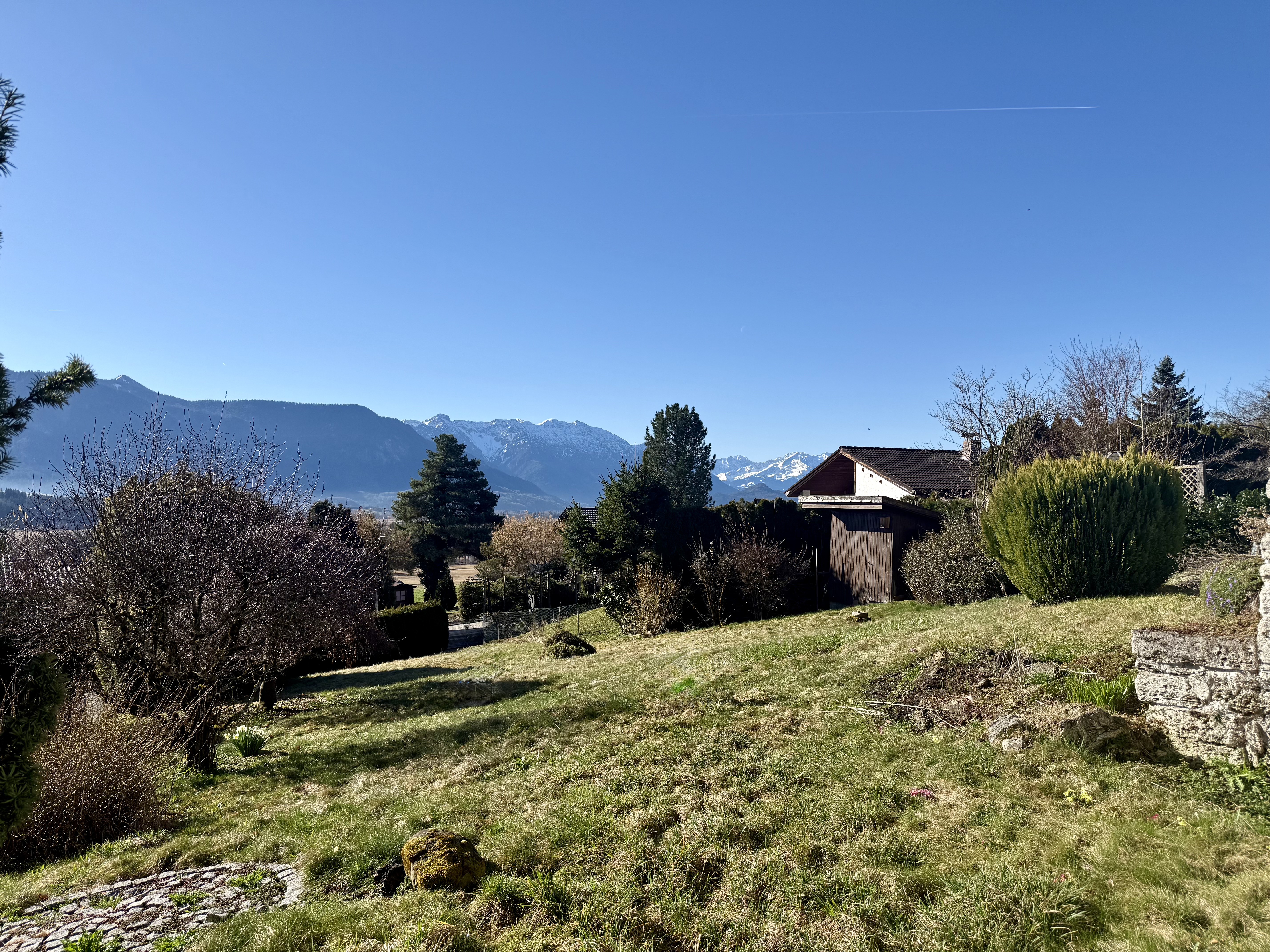 Die erhöhte Position sorgt für eine freie, weitläufige Aussicht, die den besonderen Charakter des Grundstücks prägt und eine seltene Verbindung aus Natur, Privatsphäre und Panorama schafft.