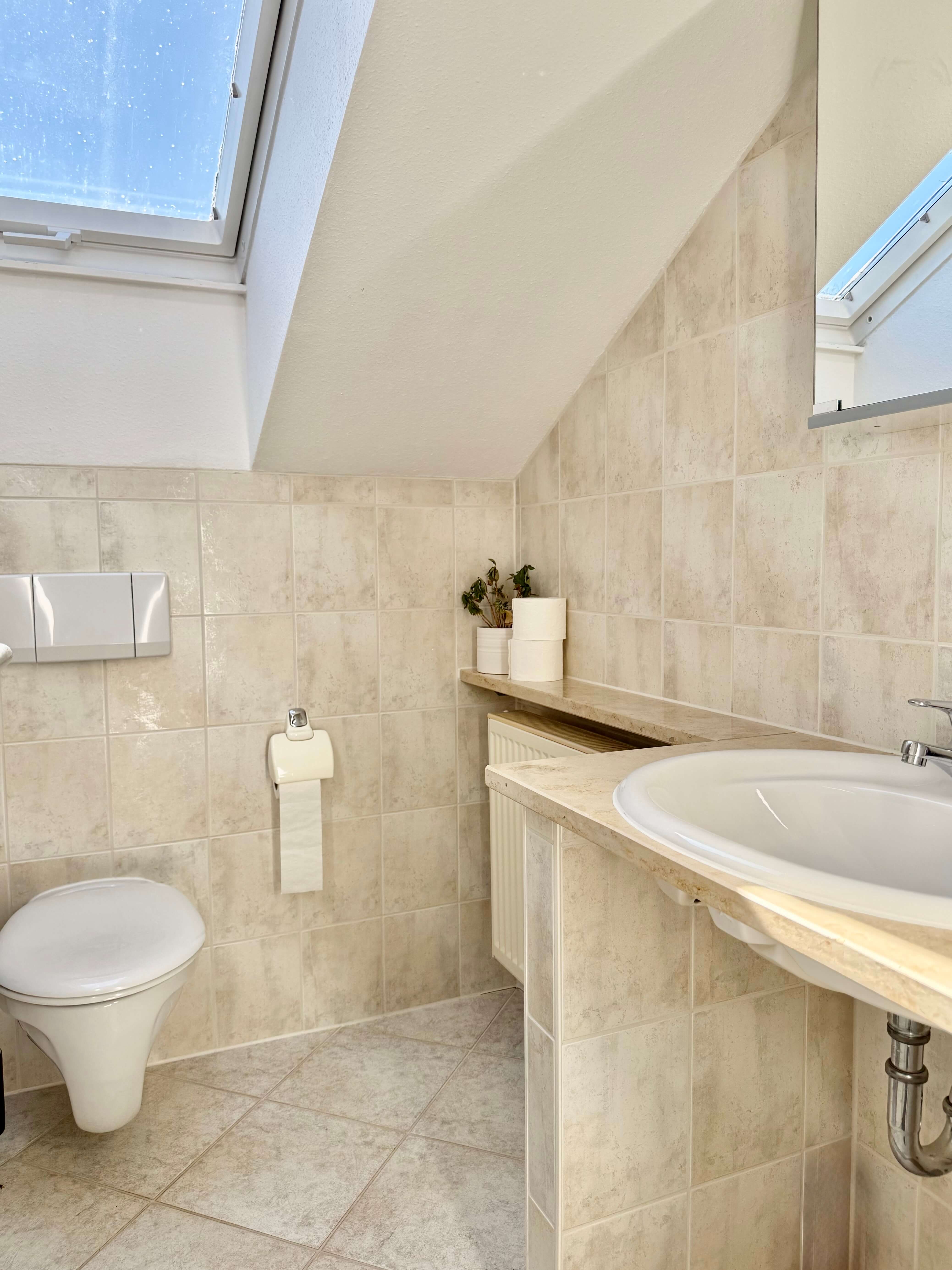 Ein weiteres Zimmer befindet sich auf der Wohnebene zusammen mit einem Gäste-WC mit Dusche.