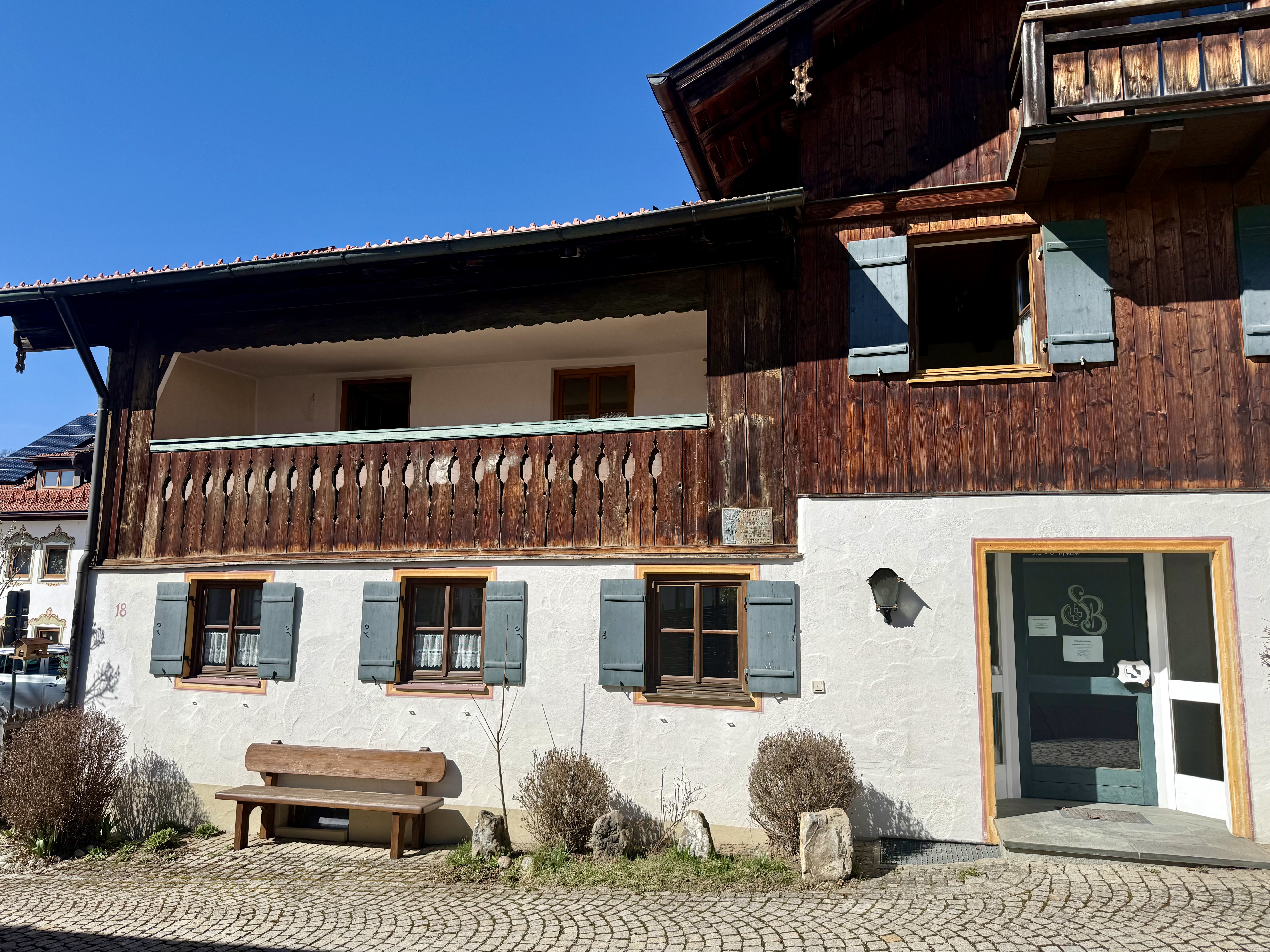 Dieses historische Wohn- und Geschäftshaus befindet sich im Herzen von Bad Bayersoien und ist ein prägnanter Bestandteil des gewachsenen Dorfplatzensembles. Erstmals 1527 in der Dorfchronik erwähnt, ist das Gebäude mit Zierbund im vorderen Giebel im Bayerischen Denkmalatlas unter der Bezeichnung „Handwerkerhaus“ geführt und steht unter Denkmalschutz.
