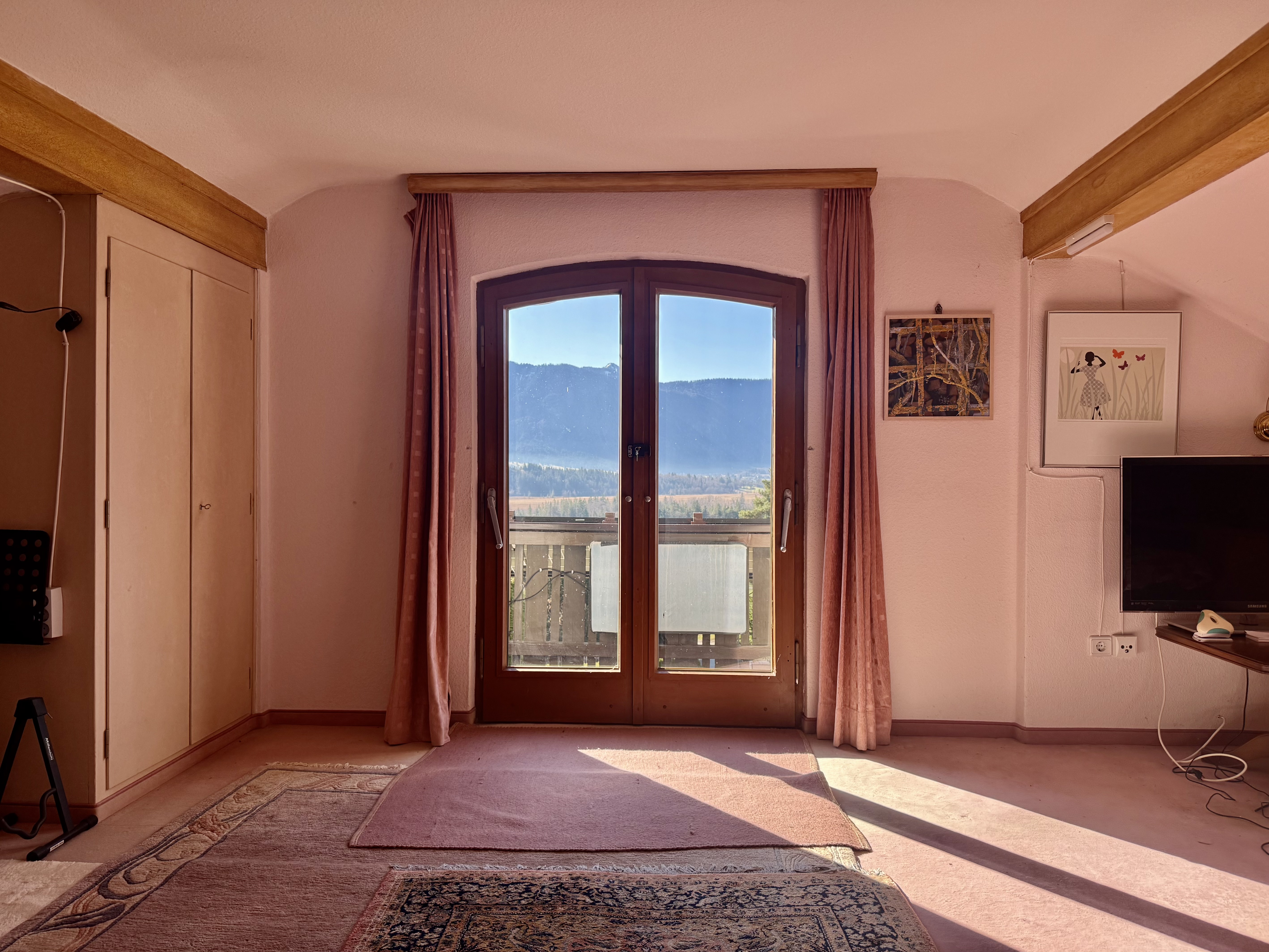 Das nach Süden ausgerichtete Grundstück umfasst 958 m2 und befindet sich in markanter Hanglage am Ende einer privaten Sackgasse. Durch diese außergewöhnlich ruhige und geschützte Lage bietet es einen unverbaubaren Blick über das Murnauer Moos bis hin zur Alp- und Zugspitze.
