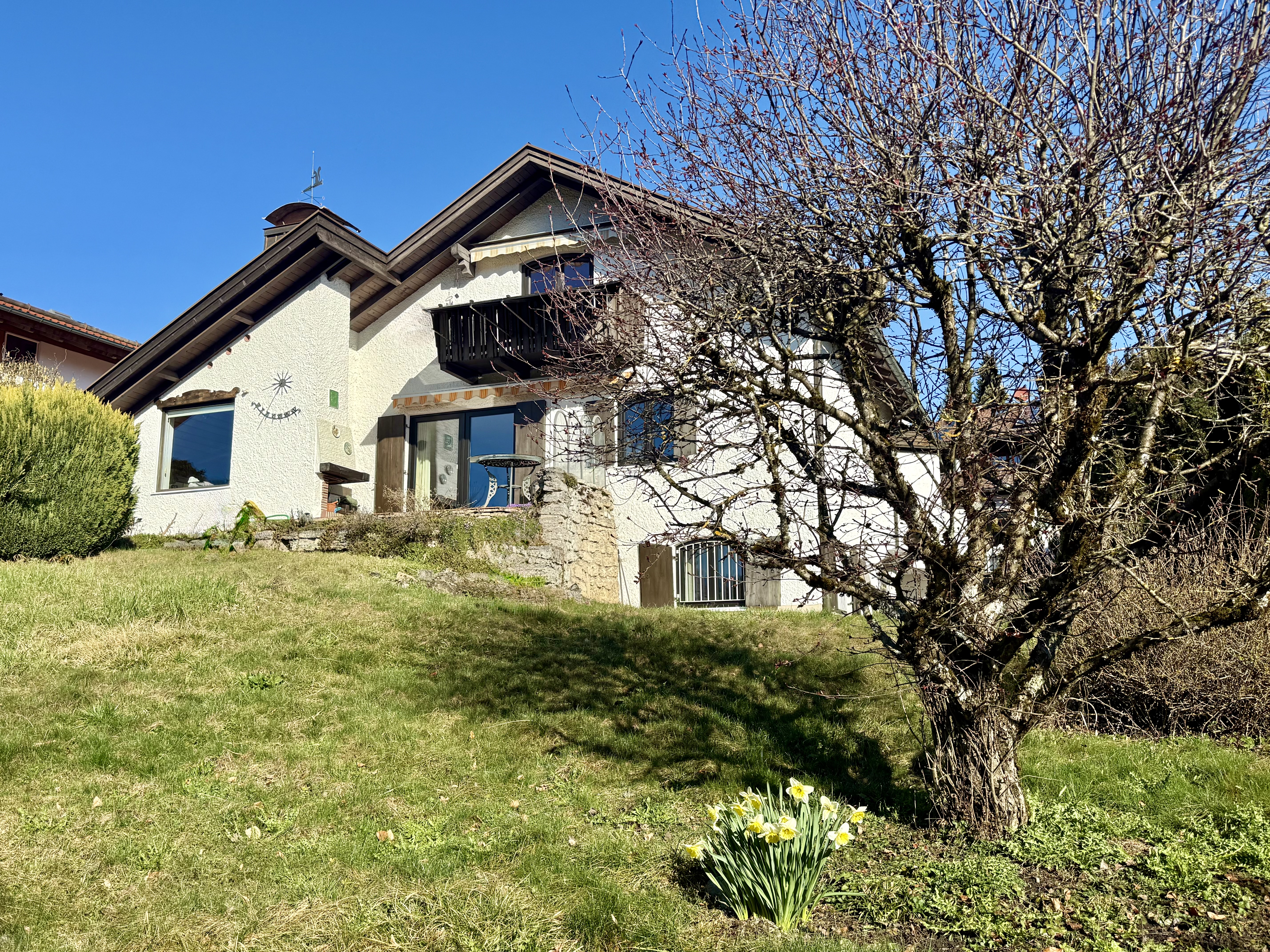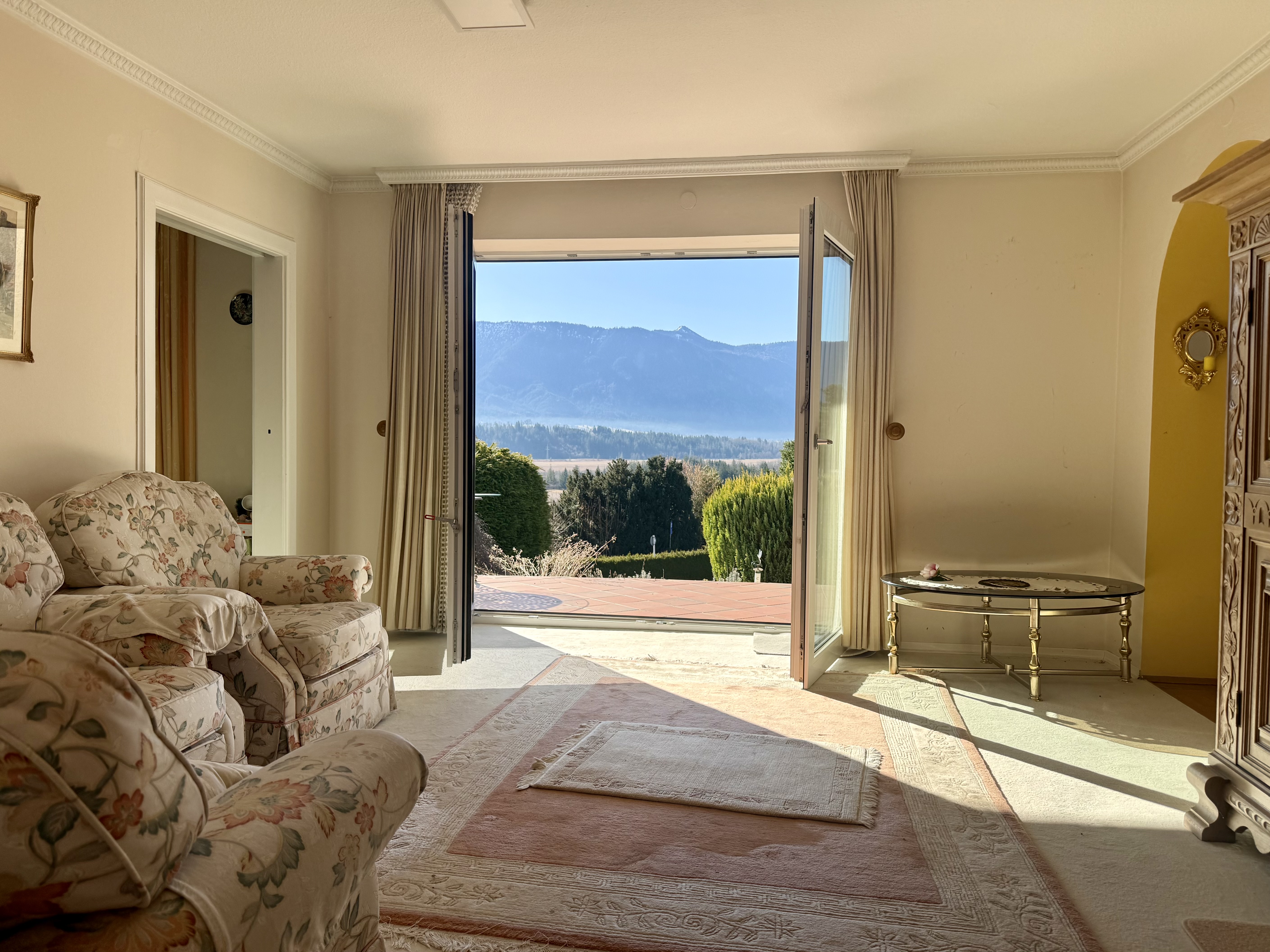 Die erhöhte Position sorgt für eine freie, weitläufige Aussicht, die den besonderen Charakter des Grundstücks prägt und eine seltene Verbindung aus Natur, Privatsphäre und Panorama schafft.