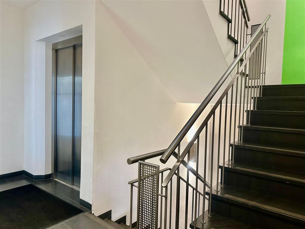 Das ansprechende Treppenhaus ist mit einem Aufzug ausgestattet, sodass die Einheit barrierefrei erschlossen werden kann.